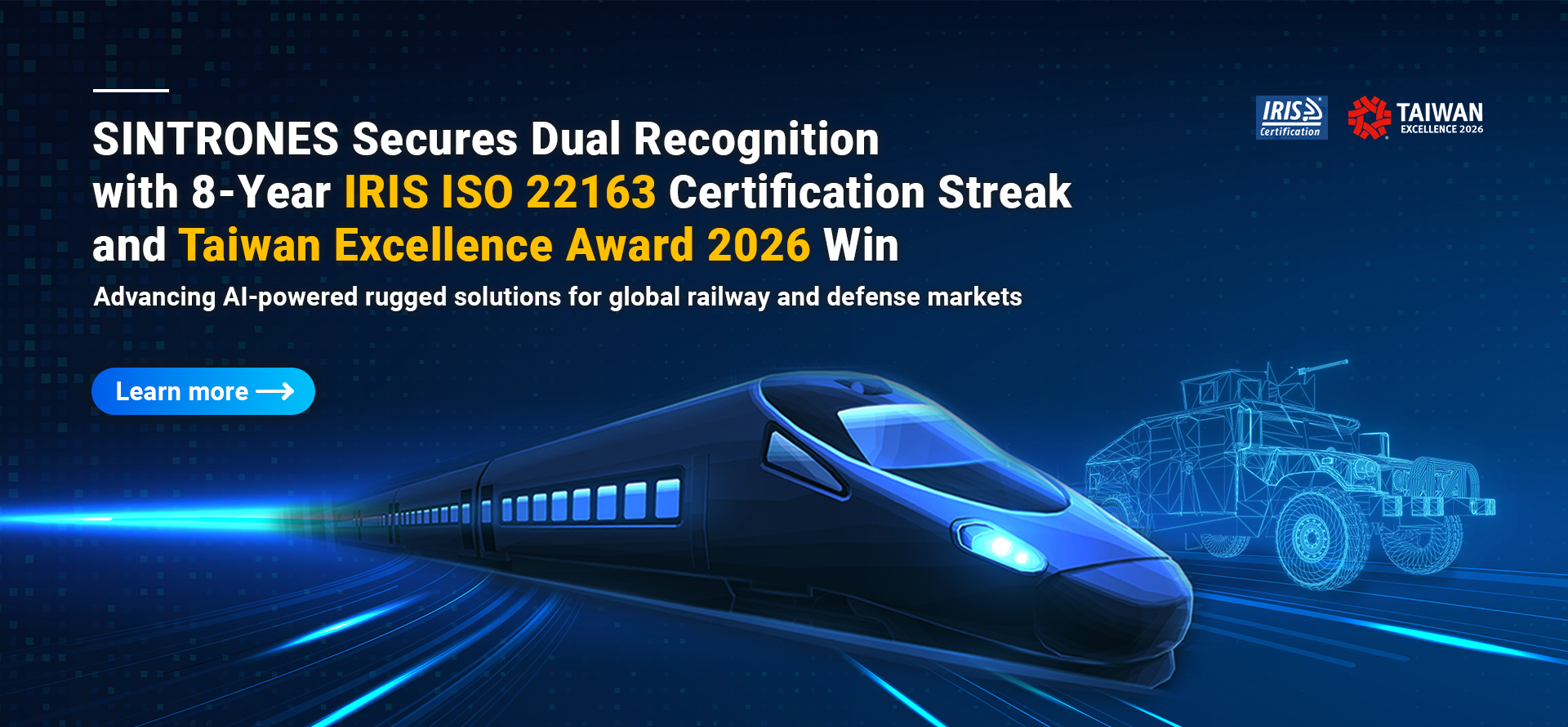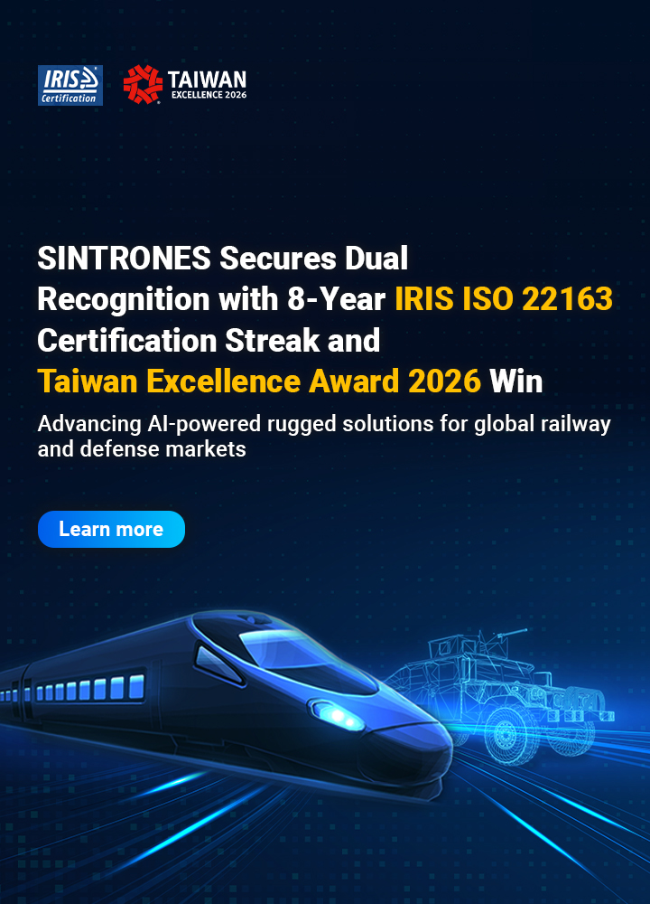 Founded in 2009, SINTRONES Technology (TWSE 6680) is a global innovator in rugged industrial and Edge AI computing solutions. Guided by its vision to power every moving industry with reliable edge intelligence and make smart cities safer and smarter, SINTRONES continues to advance intelligent computing for mission-critical applications worldwide. Certified under ISO 22163 (IRIS), ISO/IEC 27001, and ISO 9001, and compliant with EN50121, EN50155, and E-Mark standards, SINTRONES serves critical sectors including transportation, automation, military and defense, and healthcare, where performance, reliability, and innovation must work seamlessly together.