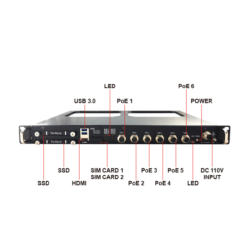 The RBOX-1000-M12X is powered by Intel Gen6 Core i7-6600U CPU with Isolated 110VDC Input 6 x GbE(optional PoE) In-Vehicle Computer / EN50155 Railway Applications. RBOX-1000-M12X is highly flexible, supporting a wide range of peripherals and connections. It offers Wireless support LTE with SIM Card, GPS, BT(option), isolated wide Input Range 77-137V DC and EN50155 Tx temperature and class S2 interruption. RBOX-1000-M12X can be operated in extreme weather conditions (operating temperature: -40ºC ~ 70 ºC) suitable for railway station management and License Plate Identification (LPI). The easy-to-use, intuitive interface makes RBOX-1000-M12X highly suitable for use in public transportation and other applications that require high capacity and simplicity.